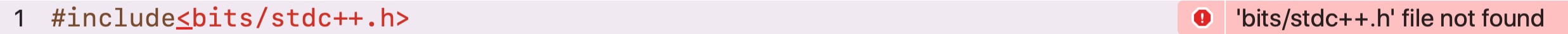 这是因为在 macOS 上默认使用 libc++ 作为 C++ 标准库实现,而万能头 bits/stdc++.h 是 GNU libstdc++ 所独有的。