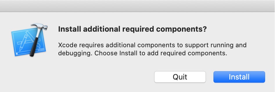 首次打开 Xcode 时,可能会遇到下列弹出窗口: